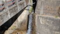 砂防堰堤の裏側(山側)が土石流をせき止めます。沢の水はえん堤中央の二つの穴から下流に流れます。真ん中の鉄格子は土石流発生時に流木をせき止めます。